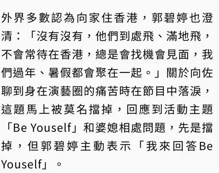 当许多东谈主齐相配操心郭碧婷在朱门的景色时,她其实之前也有进行过恢复。
